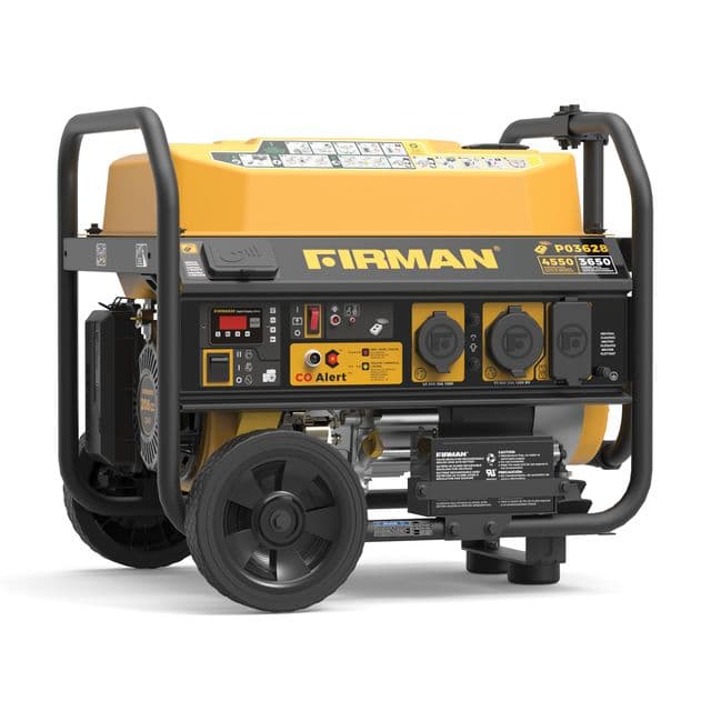 Adventure seekers and pros alike trust the FIRMAN P03628 portable generator for safe, reliable, and long-lasting power. Delivering 4,500 starting watts and 3,650 running watts, this generator runs on 120V and offers up to 14 hours of runtime at 50% load, making it the perfect companion for job sites, recreational events, or home projects.Equipped with a convenient remote start, the P03628 is easy to use and always ready when you need it. Designed to handle your essential power needs, it’s built tough and backed by FIRMAN’s commitment to quality.Outlet configuration includes 5-20R 120V 20A DUPLEX, L5-30R 120V 30A TWISTLOCK, and TT-30R 120V 30A TWISTLOCKWith the FIRMAN P03628, you’re always prepared wherever the road or your next project takes you.The P03628 comes with an engine oil bottle, oil funnel, remote control and holder, spark plug wrench, and two double open-ended wrenches (10mm x 12mm).Specifications
