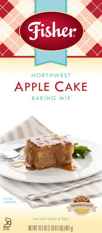 Shepherd’s grain sustainably family farmed. Just add apple & egg. Not all flours are created equal. Fisher’s flour comes from a group of Pacific NW family farms that use certified sustainable farming practices to prevent erosion, regenerate topsoil and provide healthy habitat for wildlife. Under the Shepherd’s Grain brand, these farms produce consistent high quality wheat flour that is a favorite of artisanal bakeries and home cooks alike. Fisher is proud to support local family farms in their line of simple, delicious and easy to prepare baking mixes. Enjoy!Specifications