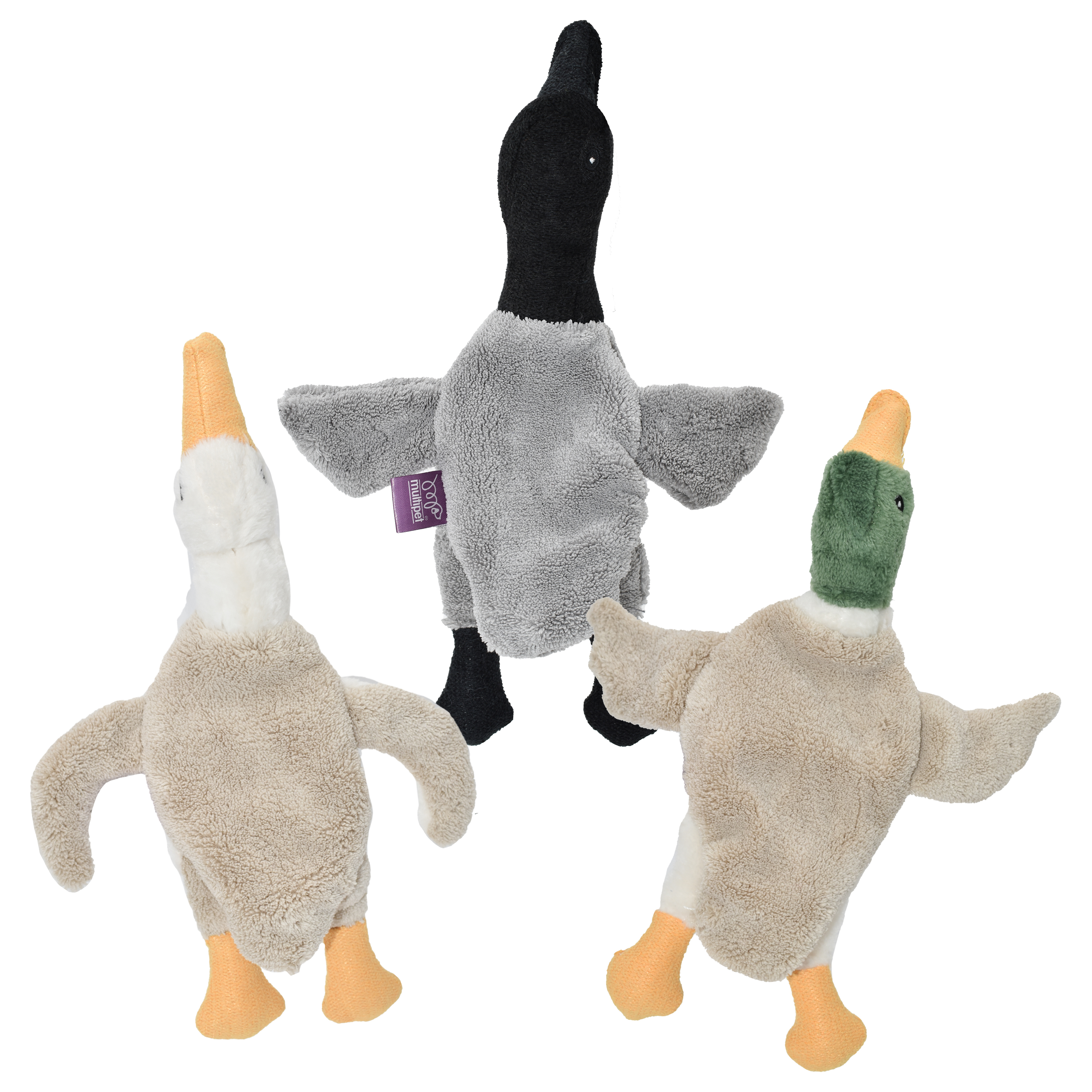 Assorted styles of Seagull, Mallard, and Goose; Includes crinkle and a squeaker; Plush dog toy