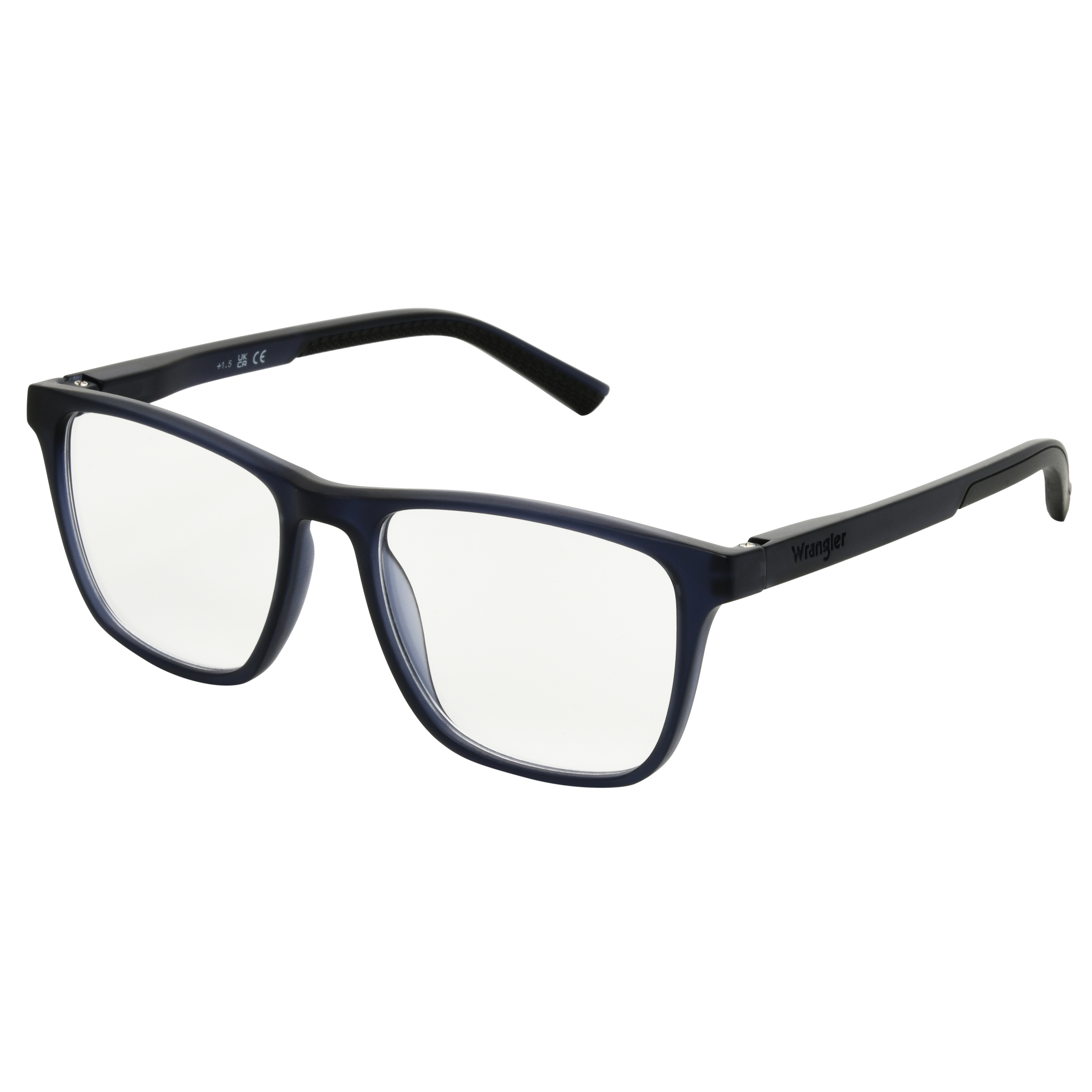 These square full-rim Wrangler Kabel Dustford Men's Reading Glasses are made to perform from sunup to sundown. The frame is made with recycled plastic with rubber temple tips for added grip, they feature fully magnified plastic lenses that are both scratch-resistant. Spring hinges offer a flexible fit, and every pair comes with a protective casebecause sharp focus should always be within reach.Specifications