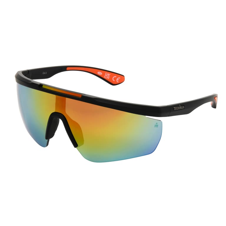 Sport a fearless look with these striking IRONMAN IronFlex black shield-frame sunglasses. Made with 50% recycled plastic, these semi-rimless frames exude a versatile and contemporary style ideal for any occasion. The mirrored lenses not only provide impeccable 100% UVA-UVB protection but also showcase impressive scratch and impact resistance. Elevate your confidence with these exceptional sunglasses, seamlessly blending style and durability.Recycled content is calculated by mass balance.Specifications