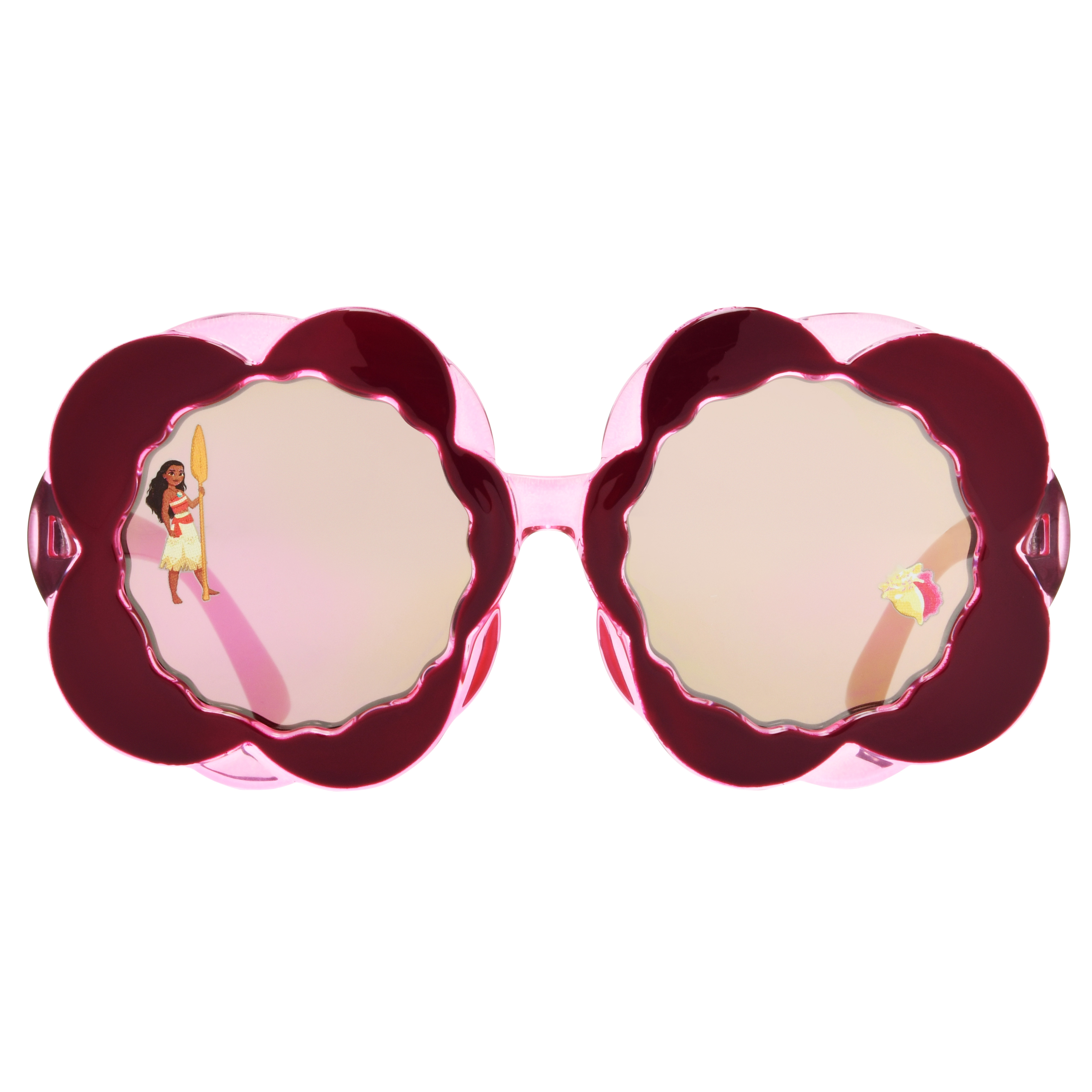 These Disney Moana inspired Pink Flower Kids Sunglasses bring whimsical fun with their playful flower-shaped frames in bright pink.Featuring mirrored lenses, they’re perfect for adding a touch of magic to any sunny adventure.The lenses, made with plastic, are scratch and impact-resistant and provide 100% UVA-UVB lens protection.Whimsical and protective from the sun's rays, they’re designed to keep little eyes safe from the sun in style.Specifications