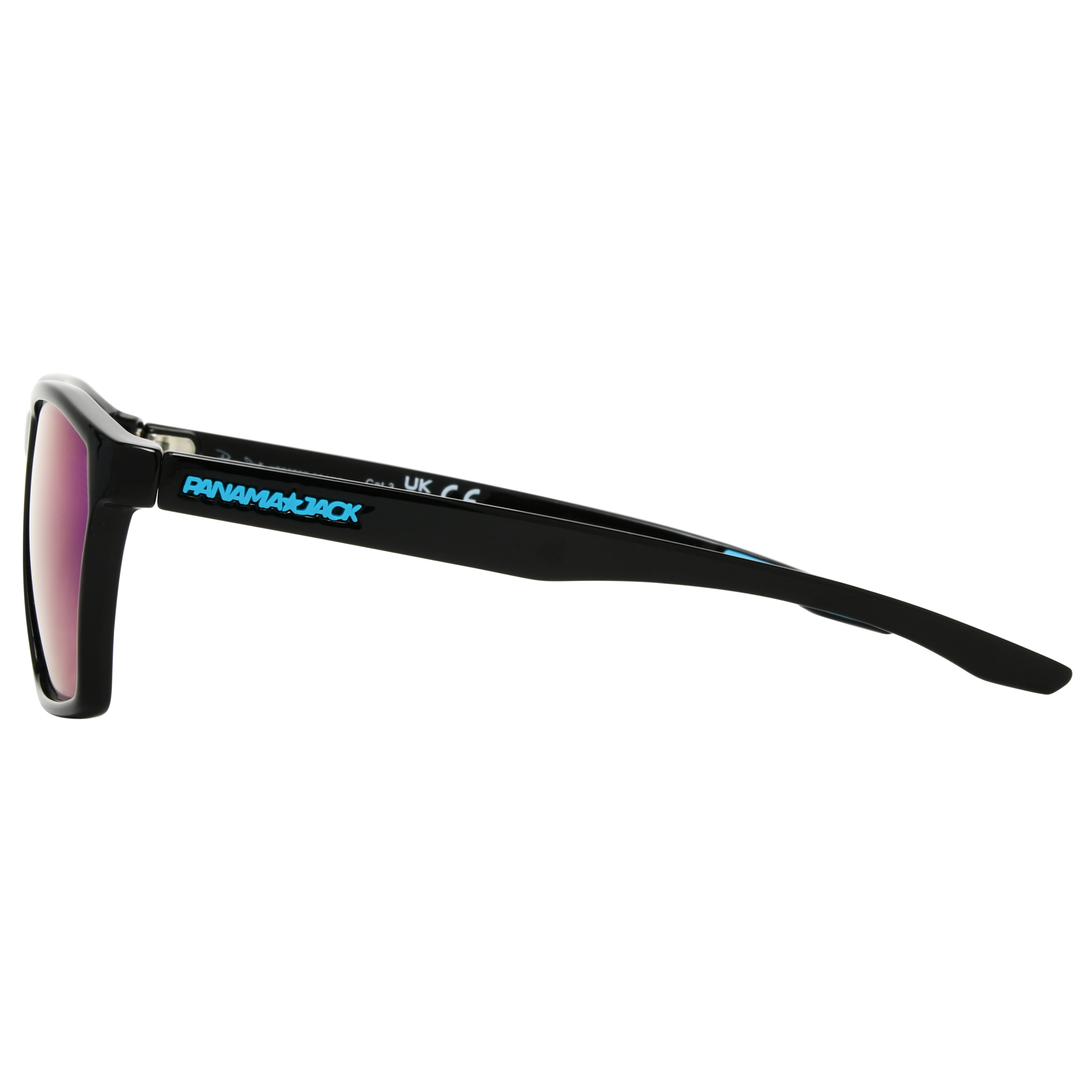 These Panama Jack x Foster Grant Black Square Men's Sunglasses offer a bold square shape with a sleek black frame and subtle blue accents for a sporty, modern edge. The mirrored lenses bring a vibrant finish while providing clear vision in bright conditions. Made with recycled plastic, the lenses are scratch and impact-resistant and provide 100% UVA-UVB lens protection.Specifications