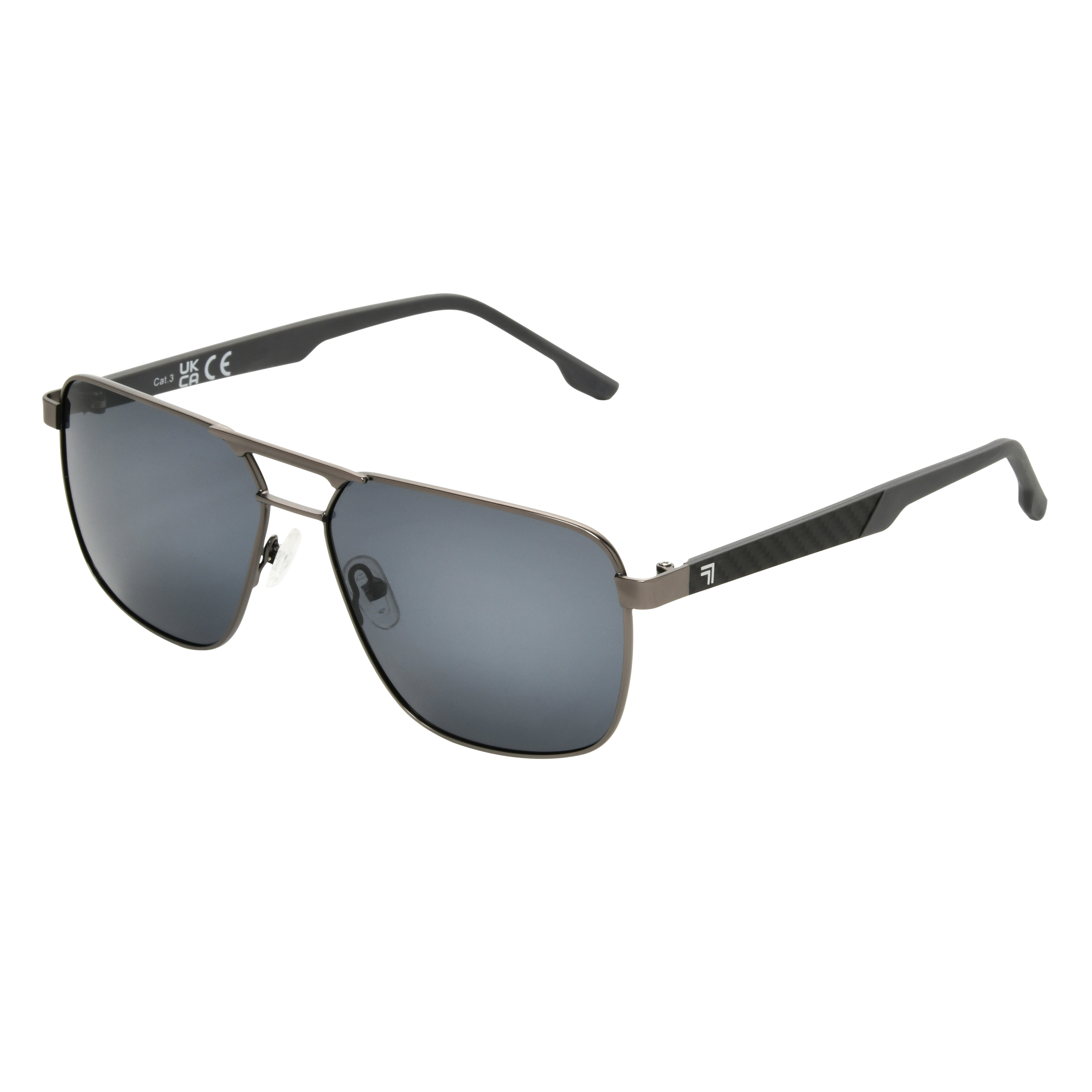 Designed for clean performance and modern utility, these Sharper Image x Foster Grant Engineer Sunglasses deliver timeless form with advanced function. The gunmetal aviator frame is paired with carbon fiber co-injected temples for enhanced comfort and resilience. Polarized TAC smoke lenses reduce glare and offer 100% UVA-UVB protection, while scratch and impact resistance ensures long-lasting clarity. Comes with a casebecause performance deserves protection.Specifications