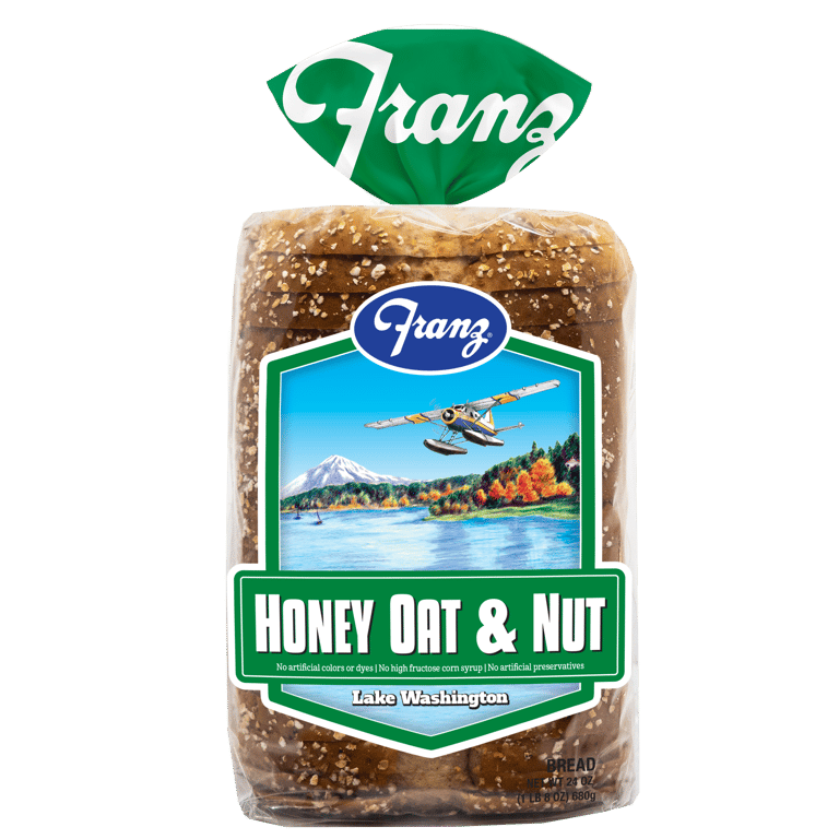 Franz Honey Oat & Nut bread blends oats and honey together perfectly to create a hearty flavor that tastes great. Our Honey Oat & Nut bread has 4 grams of protein per serving, is made with natural ingredients, is free from artificial colors or dyes, contains no high fructose corn syrup, no artificial preservatives, no partially hydrogenated oils, and 0 grams trans fat.Specifications