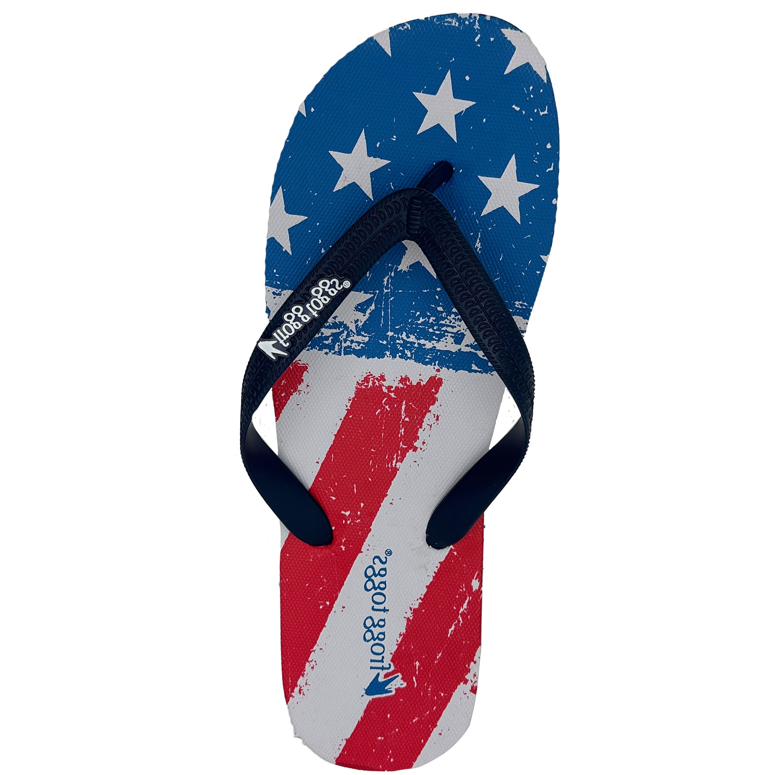 CELEBRATE AMERICA IN COMFORT AND STYLE WITH THESE LIGHTWEIGHT FLIP FLOPS AND LET YOUR PATRIOTIC PRIDE SHINE. WHETHER YOU ARE GRILLING AT A BACKYARD BBQ, STROLLING THE BOARDWALK, OR WATCHING FIREWORKS BY THE LAKE, THESE SANDALS DELIVER ALL DAY COMFORT WITH THEIR CUSIONED FOOTBED AND FLEXIBLE CONSTRUCTION. THE WATER FRIENDLY MATERIALS DRY FAST, WHILE THE TREAD DESIGN KEEPS YOU STEADY ON WET OR DRY GROUND. DURABLE, SOFT THONG STRAPS ENSURE A SECURE FIT, AND CLEANUP IS AS EASY AS A QUICK RINSE.Specifications