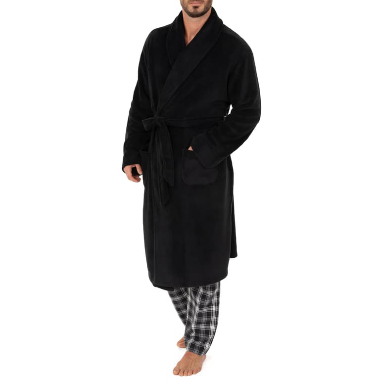 Instantly warm up chilly nights, mornings, or getting out of the shower with this Men’s Comfort-Soft Fleece Robe fromFruit of the Loom. Crafted with extra-soft fleece fabric and a variety of solid colors available gives this robe has an elegant look. It is perfect to wear over your favorite pajamas for extra warmth around the house. Additional features like a shall-collar will keep your neck warm, waist tie belt for a snug fit, and two large side pockets make carrying your gadgets a breeze. From your morning coffee routine till bedtime, and anytime in between, this fruit of the Loom Men’s Comfort-Soft Fleece Robe will keep you comfortable and toasty warm all winter long.Specifications