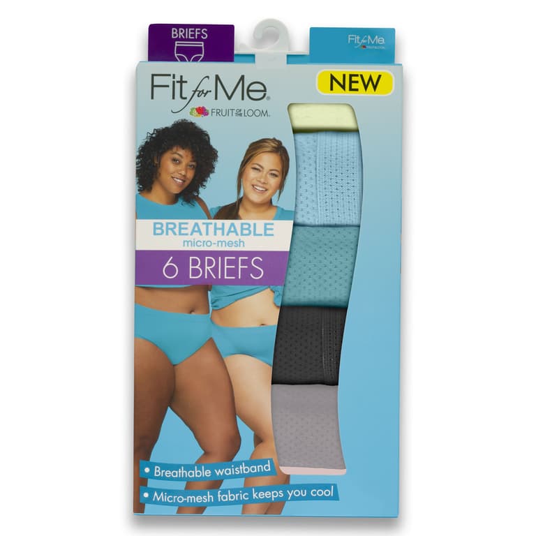 WE CANNOT GUARANTEE A SPECIFIC COLOR. FRUIT OF THE LOOM WOMENS FIT FOR ME BRIEFS ARE BREATHABLE MICRO MESH BRIEFS THAT FEATURE A SMOOTH WAISTBAND SOFT LEG BANDS AND ARE TAG FREE. THESE BRIEFS WERE DESIGNED WITH COMFORT IN MIND AND WILL KEEP YOU FEELING YOUR BEST ALL DAY LONG.Specifications
