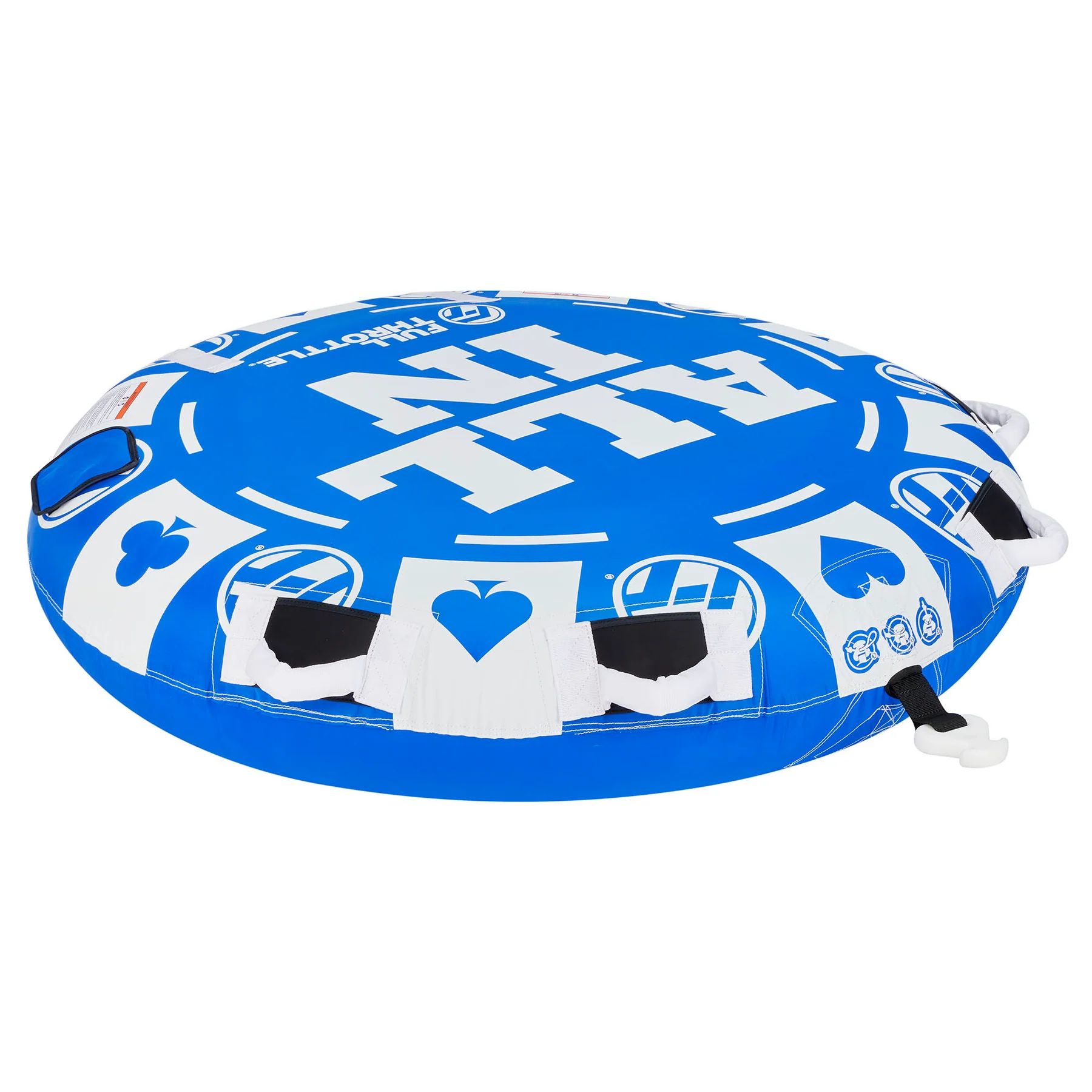 2 Riders; 60 Deflated size; Boarding assist straps make loading tube from water easier; Comfort handles with neoprene knuckle guards; Foam float; Inflation and deflation port; Max. weight 340 lbs.; PUMP: 12V accessory outlet; ROPE: Min. tensile strength 2375 lbs., 60’ Length; Rugged and durable nylon cover; Two adapters