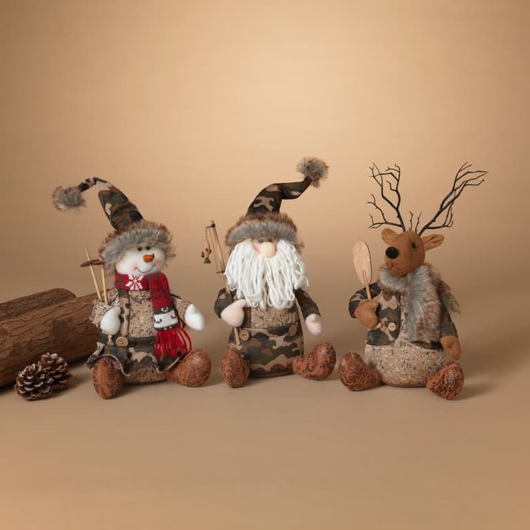 Color choice not guaranteed for online orders 13"H Fabric Camouflage Sitting Holiday Figurine, 3 AssortedSpecifications