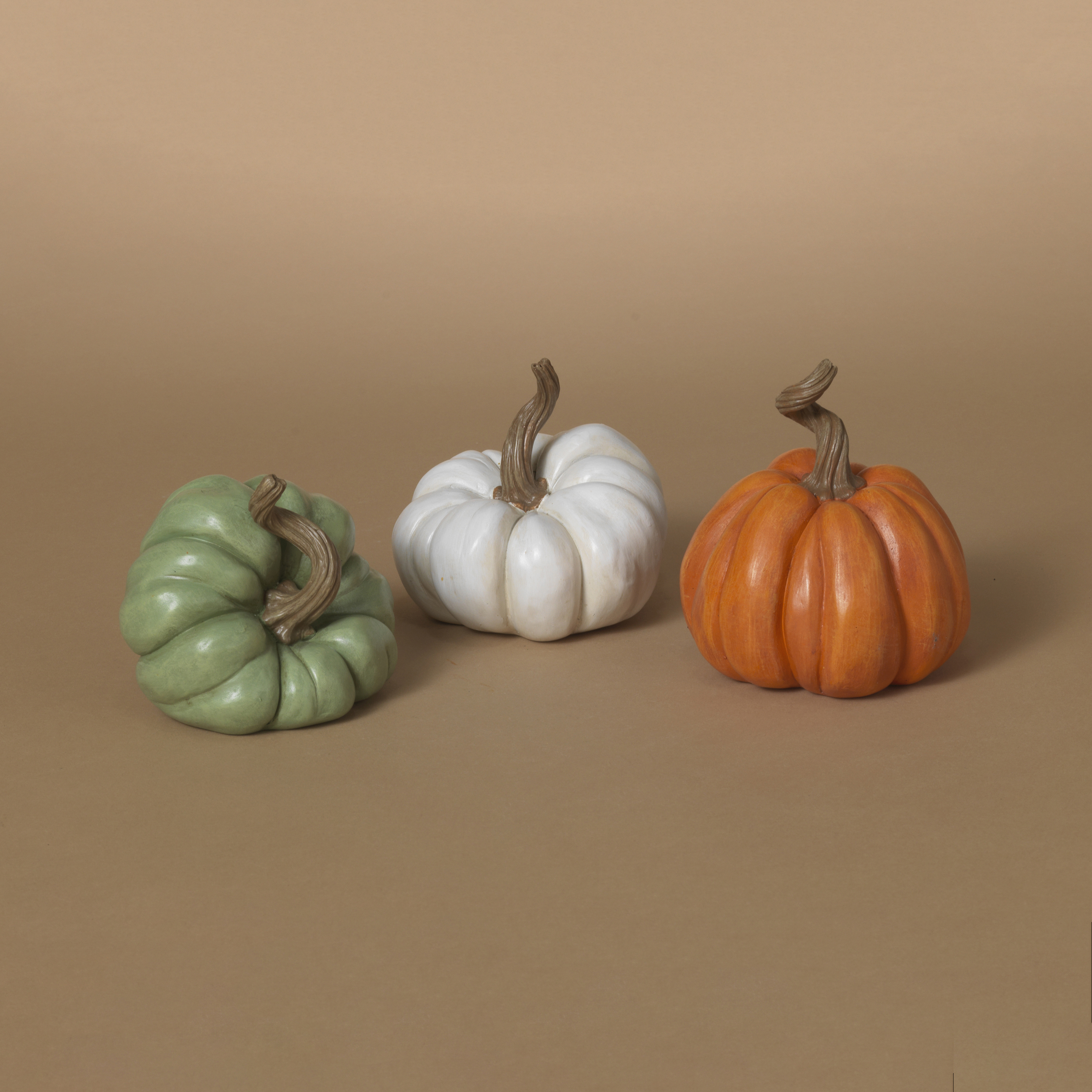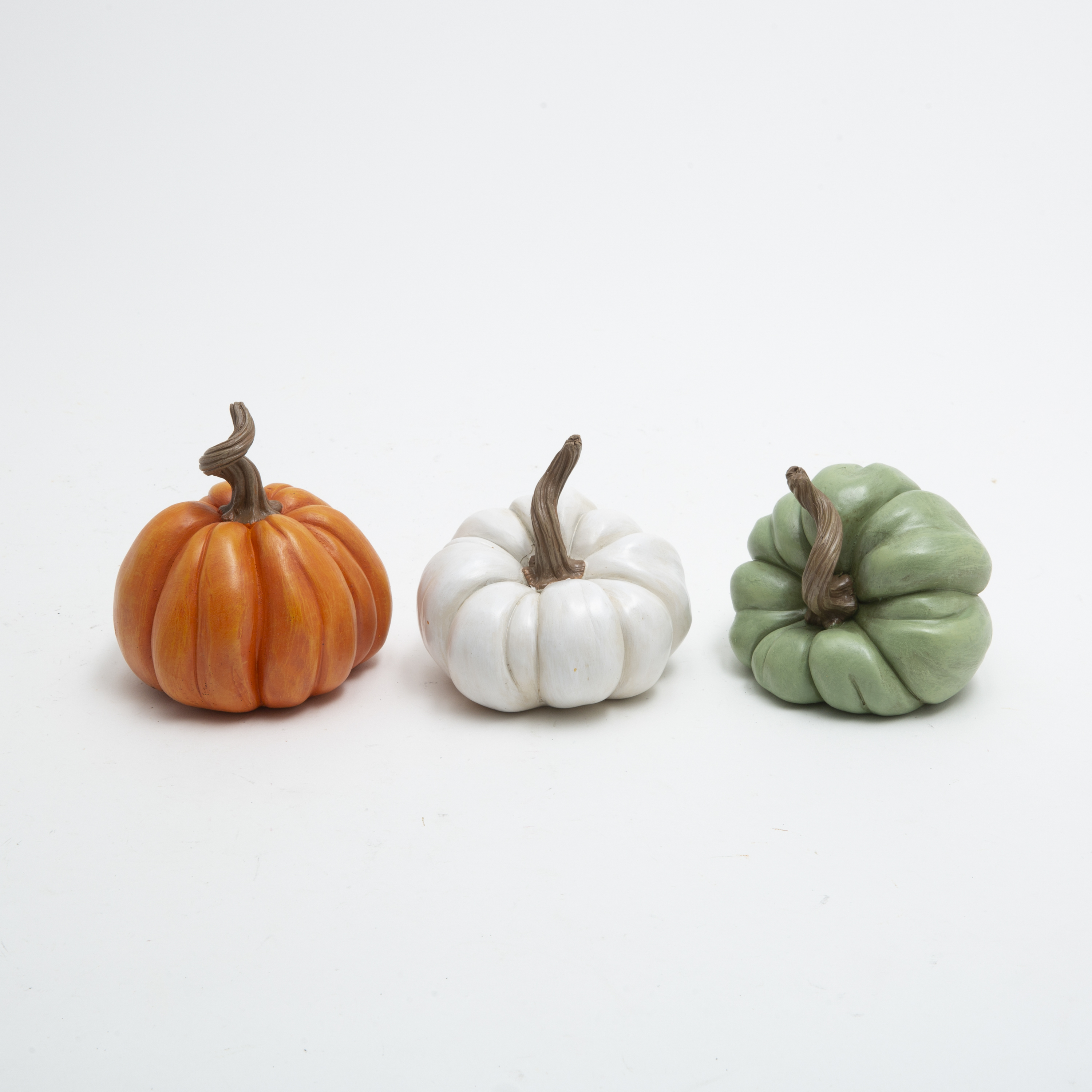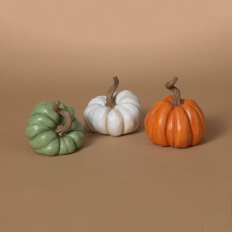 color choice not guaranteed for online orders 4.33 in H Resin Harvest Pumpkin in 3 assorted stylesSpecifications
