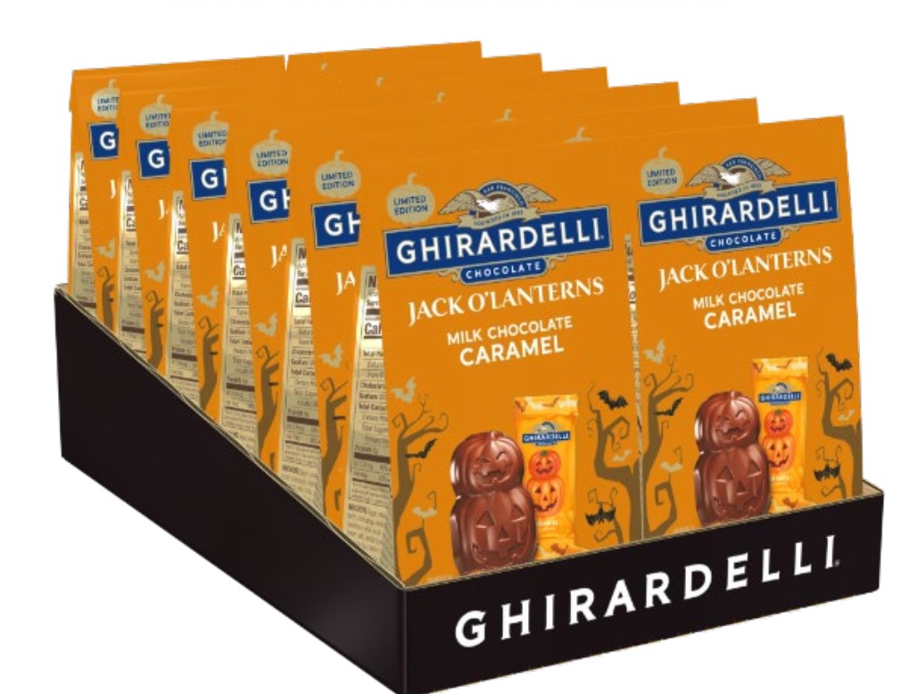 CELEBRATE THE SPOOKY SEASON THIS YEAR WITH GHIRARDELLIS CHOCOLATE JACK O LANTERNS. THESE CHOCOLATES COME IN A 4.1 OZ BAG AND THEY ARE INDIVIDUALLY WRAPPED MAKING THEM PERFECT FOR CANDY DISHES, CANDY BOWLS OR HANDING OUT TO TRICK OR TREATERS.Specifications