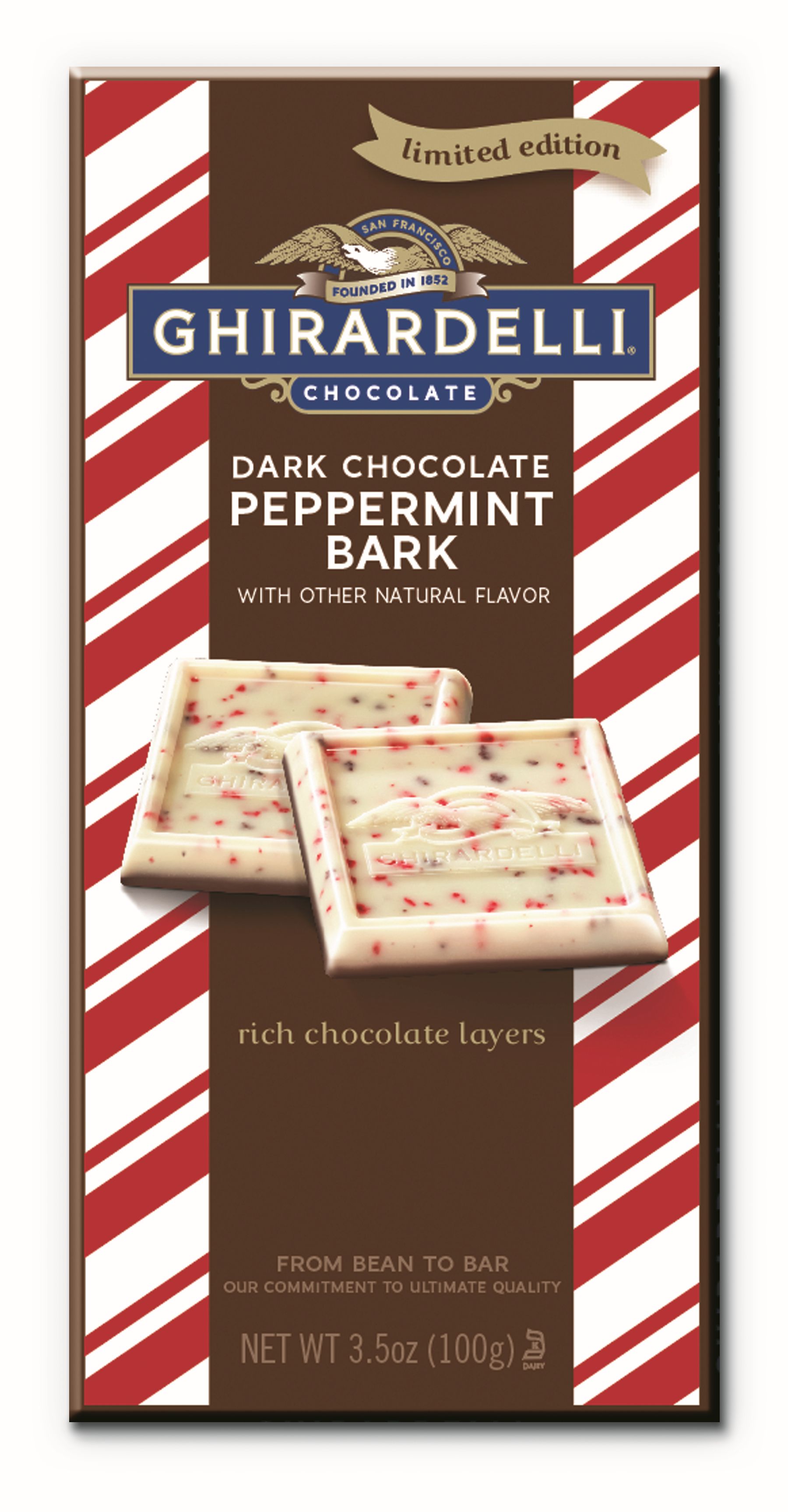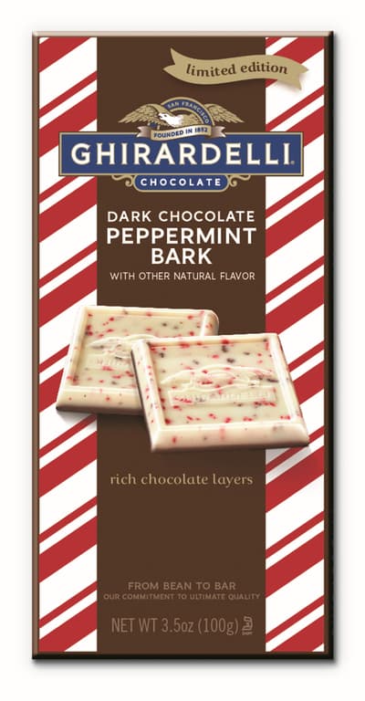 Celebrate the holidays with a seasonal favorite- Ghirardelli Dark Chocolate Peppermint Bark Squares. Create special memories and sweeten traditions with slow-melting dark chocolate and white chocolate layers with festive peppermint flavor. Dark Chocolate Peppermint Bark Squares are the perfect gift for friends and family. Use Dark Chocolate Peppermint Bark Squares for all your holiday traditions- Christmas stocking stuffers, as a festive accent when wrapping gifts, holiday table decor, or to add sparkle to any candy dish. Each Dark Chocolate Peppermint Bark square is created with indulgent chocolate to make the holidays a bite better.Specifications