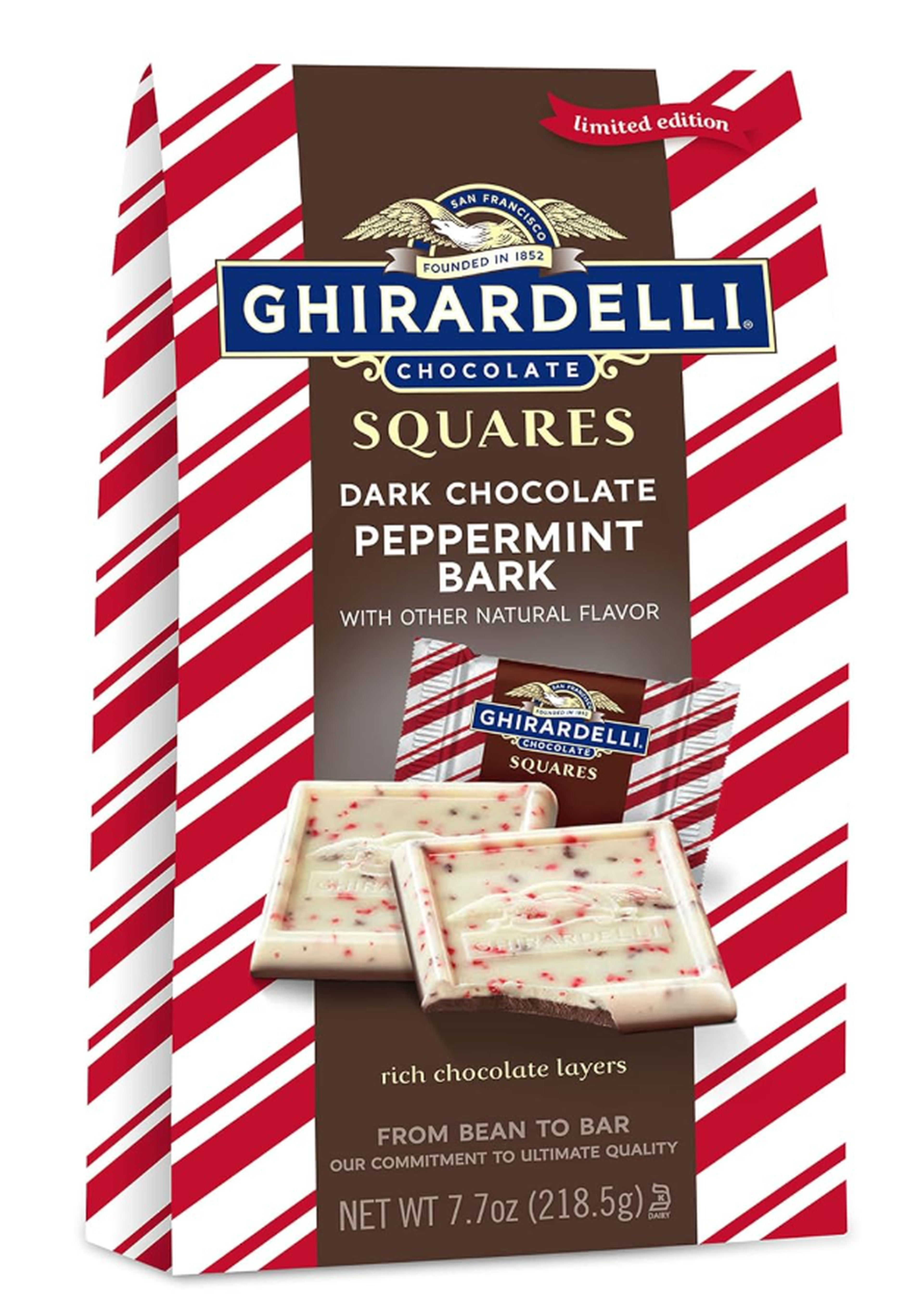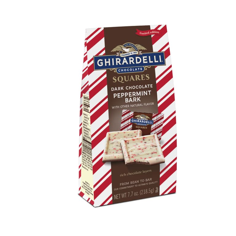 SPREAD CHRISTMAS CHEER THIS YEAR WITH EVERYONES FAVORITE GHIRARDELLI DARK CHOCOLATE PEPPERMINT BARK SQUARES.THESE INDIVIDUALLY WRAPPED CHOCOLATES ARE PERFECT FOR GIFT GIVING OR SHARING WITH YOUR FRIENDS AND FAMILY.Specifications