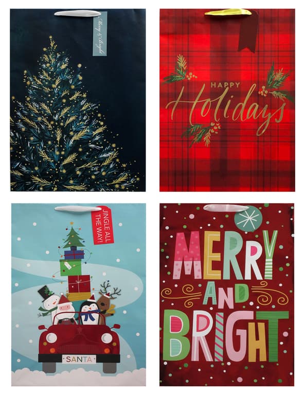 4 ASSORTED HOT STAMP OR GLITTER DESGNS: 21.5"H x 7.5"W x 15"L