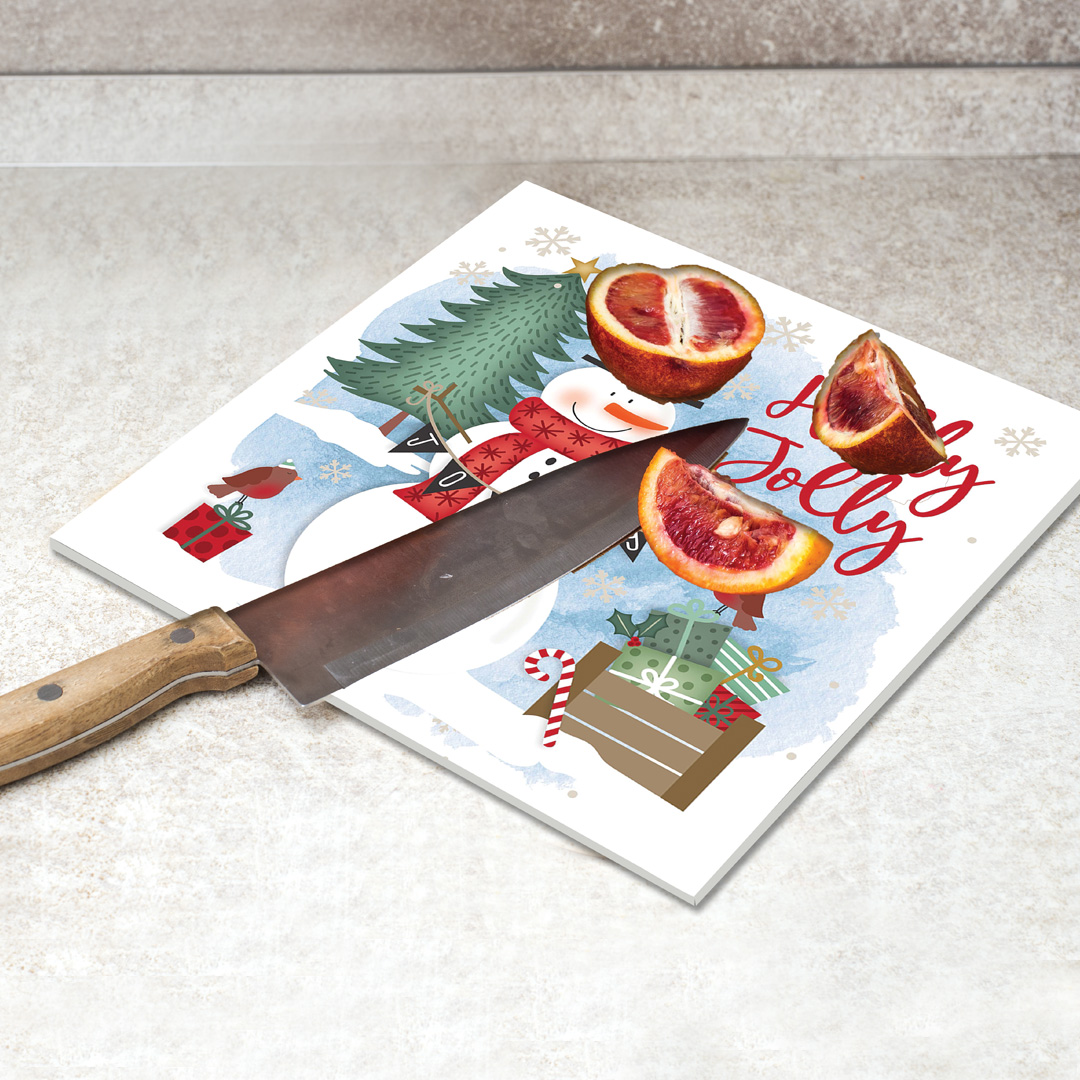 COLOR CHOICE NOT GUARANTEED FOR ONLINE ORDERSHoliday Glass Cutting Boards. Rubber feet to protect the surface.Specifications