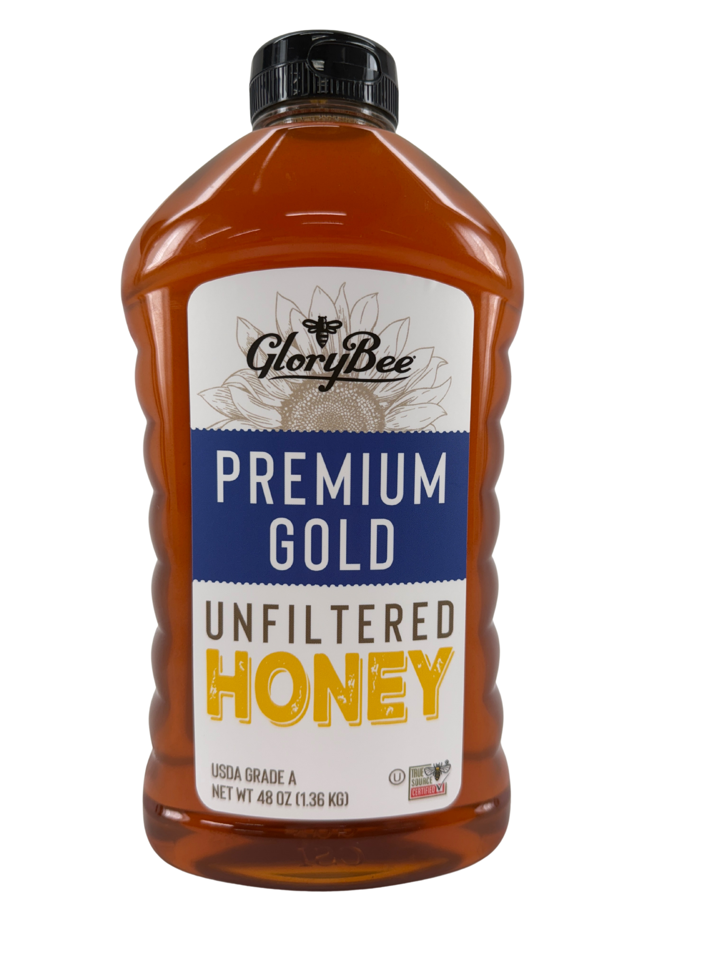 With nearly 50 years of experience in the honey industry, GloryBee knows honey. With stringent quality control, product consistency, and a commitment to sustainability and responsible sourcing, you can trust GloryBee for your honey and ingredient needs. Enjoy the sweet, delicate flavor of GloryBee's Premium Gold Unfiltered Honey. Harvested from the nectar of organically farmed clover fields, this Organic Non-GMO Project Verified honey is 100% pure, raw (never heated above 115 degrees F) and unfiltered retaining the natural pollen and flavor of honey straight from the hive. With a naturally creamy texture, it is delicious in tea or spread on toast or bagels. GloryBee donates 1% of sales from this product to SAVE the BEE which helps fund critical honey bee health research.Specifications