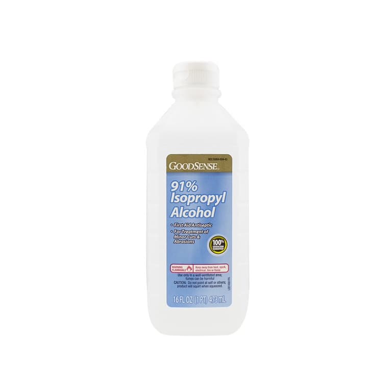 Goodsense Isopropyl Alcohol 91%First aid to help prevent risk of infection from minor cuts, scrapes and burnsWorks to clean and sanitize and is suitable for a variety of uses. The 91% solution isopropyl alcohol can be used on minor cuts, scrapes and burns. It also works to clean and protect the skin from infection when used immediately after injury. It's suitable for use at home or in the clinic and can even be rubbed onto the skin to ensure the area is properly cleaned prior to injection. Pour on this 91% rubbing alcohol or dab it onto the affected area with a cotton swab or pad for a more precise application.Specifications