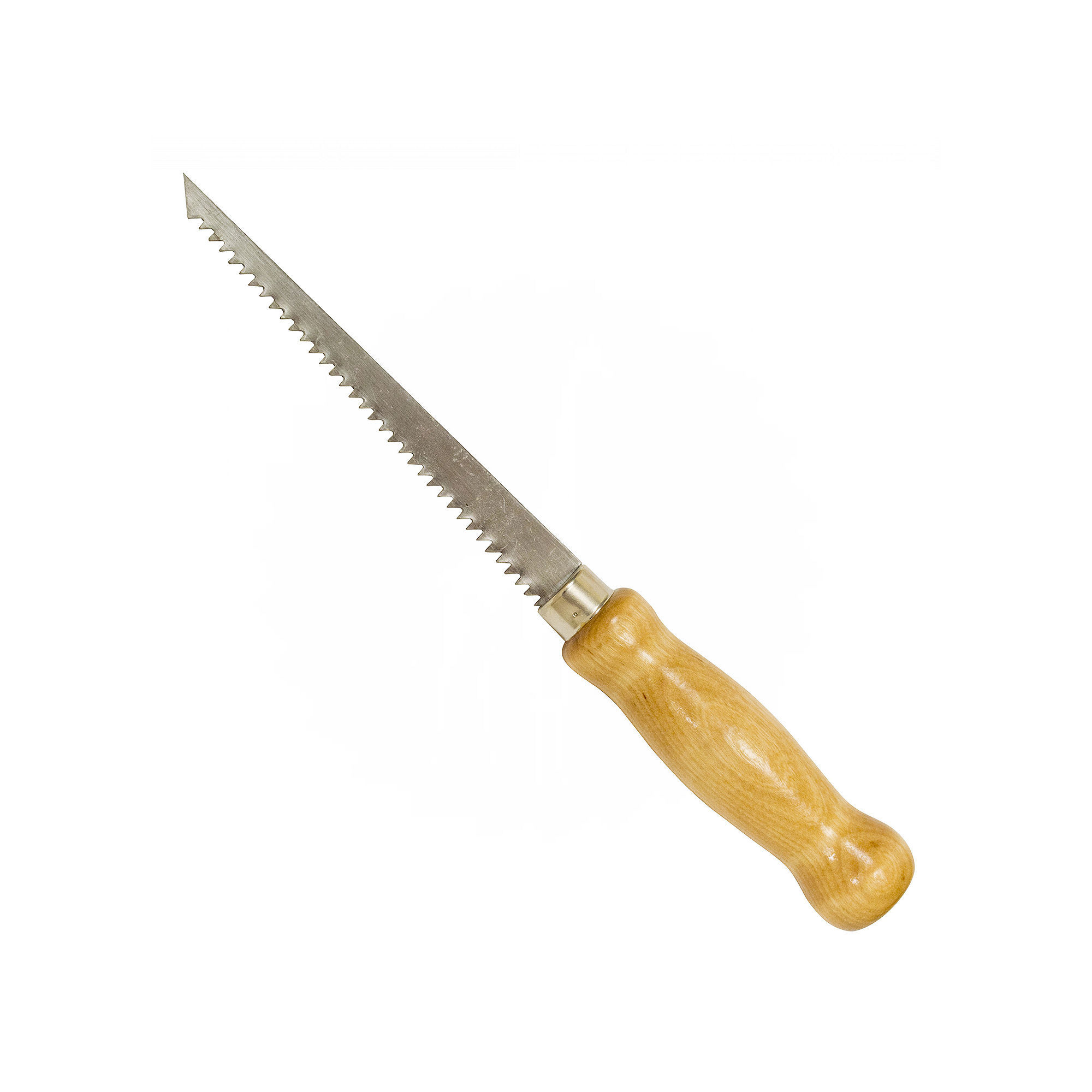 Finished hardwood handle; Hardened and tempered steel; Nickel plated ferrule to resist rust; Pointed tip for plunge cuts