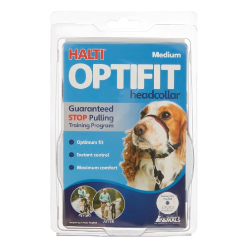 The Halti OptiFit is a dog headcollar designed to help prevent dogs from pulling on the leash. The Halti OptiFit headcollar unlike other dog headcollars is designed for dogs with unique nose and head sizes and can be adjusted to fit each dogs optimal fit without slipping or sliding. For dogs prone to pulling the OptiFit Headcollar helps retrain dogs to walk normally and comfortably on the leash without pulling. Available in three different sizes the Halti OptiFit is great for small medium and large dogs who pull on the leash and pet parents who are looking for a comfortable solution. Halti products are better together! The Halti OptiFit Headcollar works best when used with the Halti Training Lead with multiple connection points for optimal steering and control.Specifications