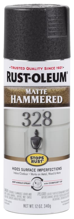 Rustoleum Stops Rust Hammered Spray Paint allows for a unique matte finish on dinged up surfaces without the use of sanding or priming. The durable formula applies directly over rust and provides excellent resistance to the elements for a long-lasting finish. With excellent hiding capabilities the paint can be used on a variety of indoor and outdoor projects to hide flaws and imperfections and leave a distinctive hammered look.Specifications