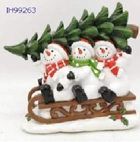 3 Happy Snowmen, riding a sled, carrying a Christmas TreeSpecifications