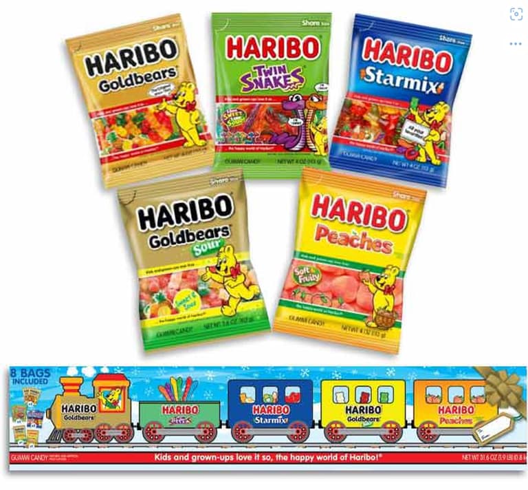HOP ABOARD THE SWEET TRAIN OF FESTIVE ASSORTED GUMMY BEARS AND CANDY WITH A TOTAL OF 7 BAGS. THIS DELIGHTFUL ASSORTMENT FEATURES AN ENCHANTING MIX OF CLASSIC GUMMY BEARS, TWIN SNAKES, AND STARMIX IN VIBRANT COLORS AND FLAVORS PERFECTLY PACKAGED IN A CHARMING TRAIN-THEMED BOX.Specifications