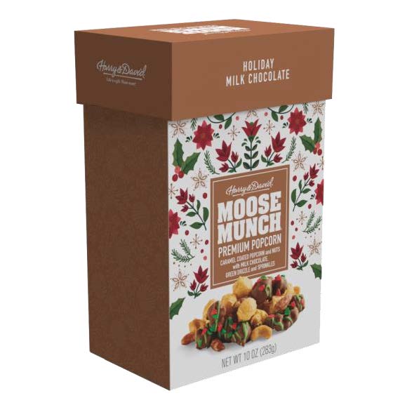 10 OZ; HOLIDAY; MOOSE MUNCH HOLIDAY MILK CHOCOLATE; POPCORN