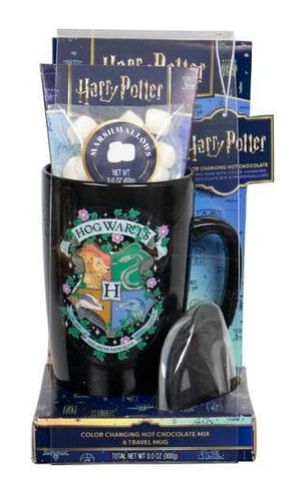 CHANNEL YOUR INNER WIZARD OR WITCH AS YOU SIP YOUR MORNING CUP OF COFFEE OR AFTERNOON TEA FROM THIS BEAUTIFUL GIFT SET. THIS HARRY POTTER COLLECTABLE TRAVEL MUG IS THE PERFECT GIFT FOR HARRY POTTER FANS. THE TRAVEL MUG INCLUDES A PLASTIC LID, MARSHMELLOWS AND COLOR CHANGING HOT CHOCOLATE MIX.Specifications