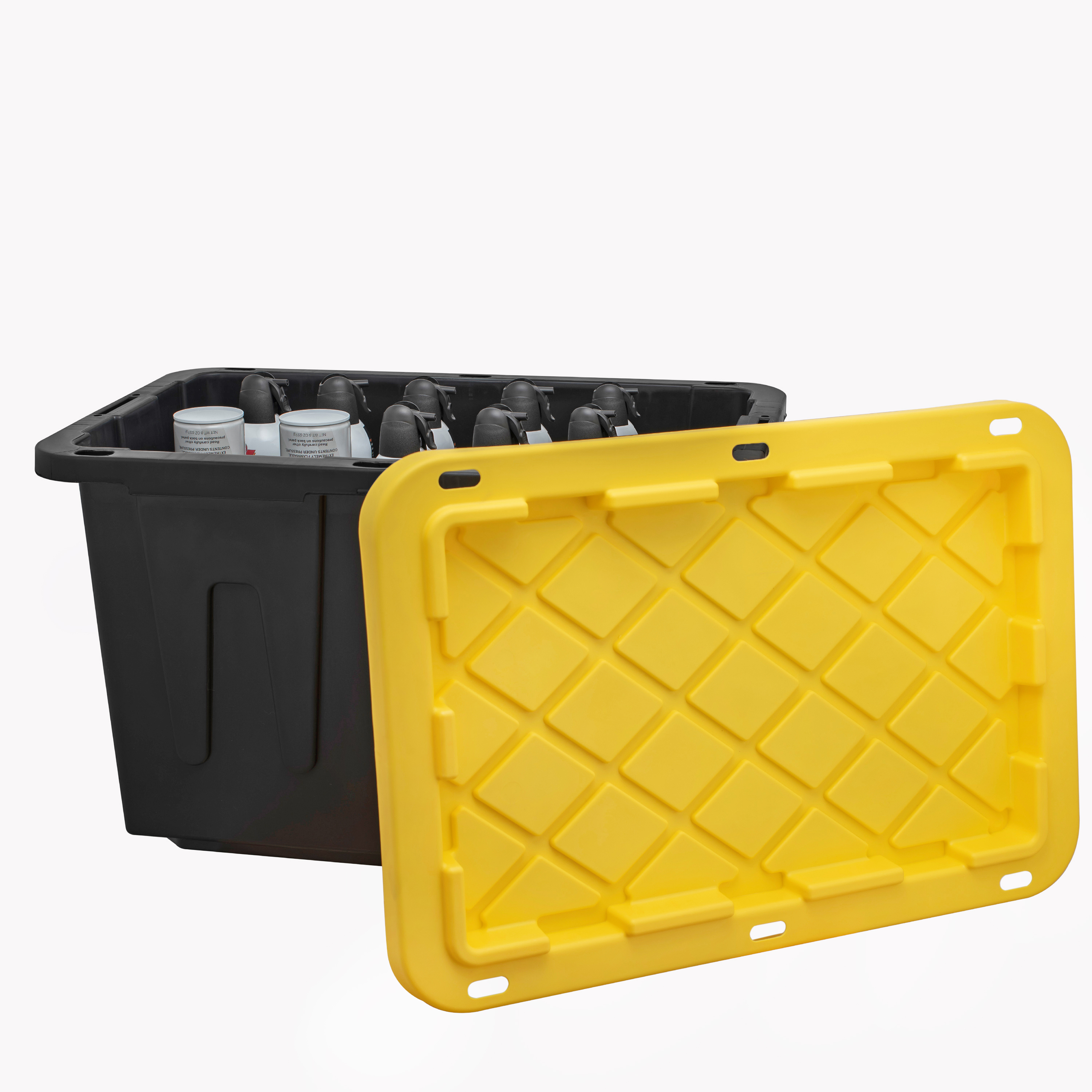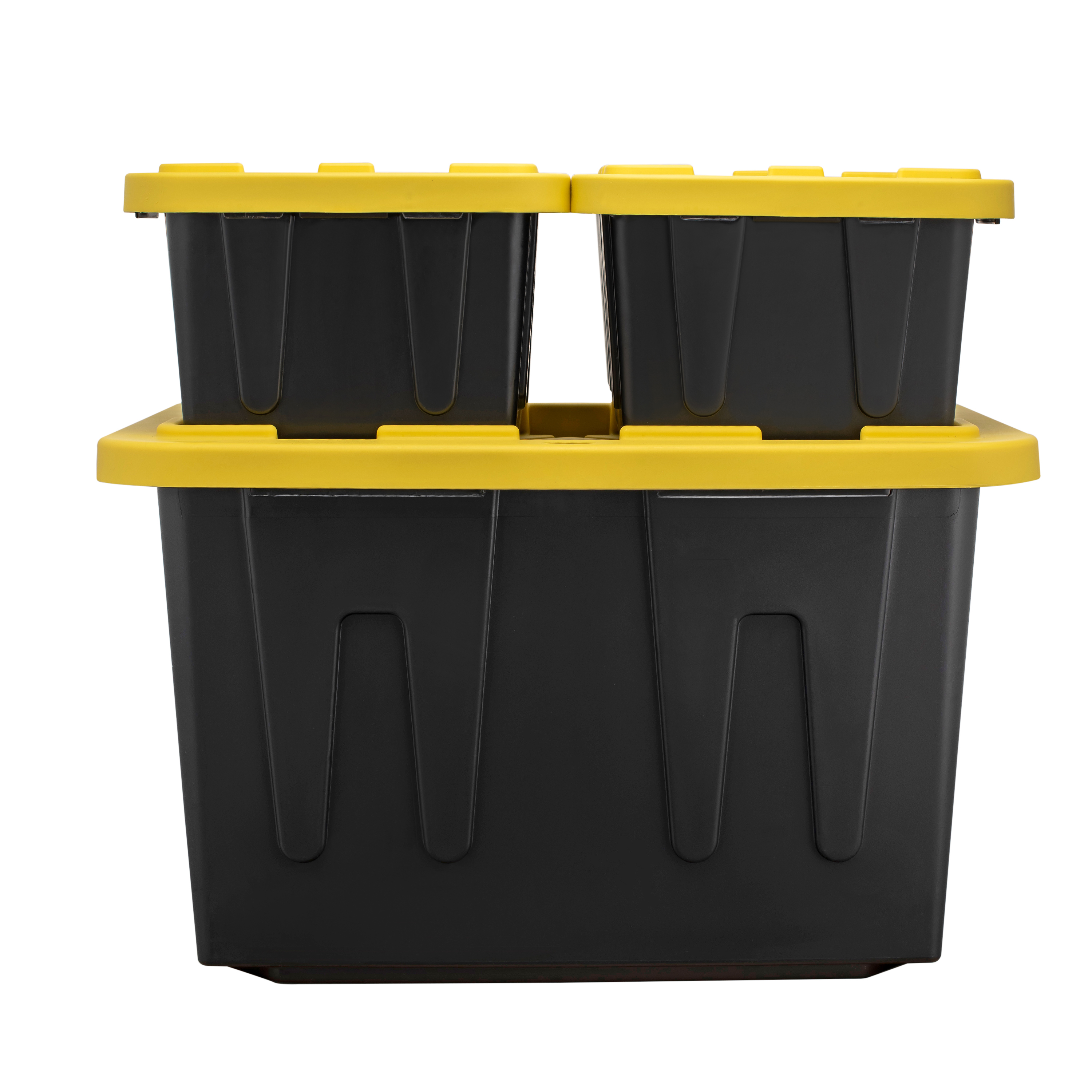 23 GALLON TOTE; BLACK BASE; SNAP LID; YELLOW LID