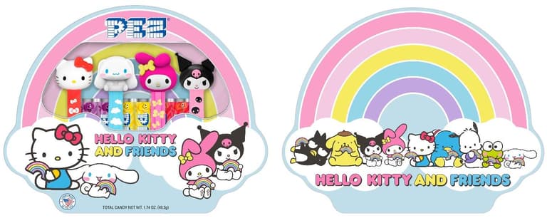 HELLO KITTY PEZ GIFT TIN INCLUDES FOUR HELLO KITTY PEZ DISPENSERS; HELLO KITTY, CINNAMOROLL, MY MELODY AND KUROMI. EACH HELLO KITTY PEZ GIFT TIN INCLUDES SIX PEZ CANDY REFILLS.Specifications