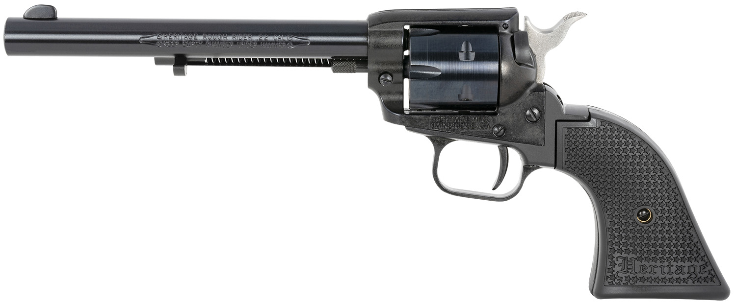 The Heritage Rough Rider handguns are built with numerous grip options and feature the same classic profile and precision action as their big-bore counterparts yet come chambered in .22 LR or as a two-cylinder combo, allowing you to shoot either .22 LR or .22 WMR ammo. IF "OUT OF STOCK" IS DISPLAYED: Please contact your local Bi-Mart for possible special order options.Specifications