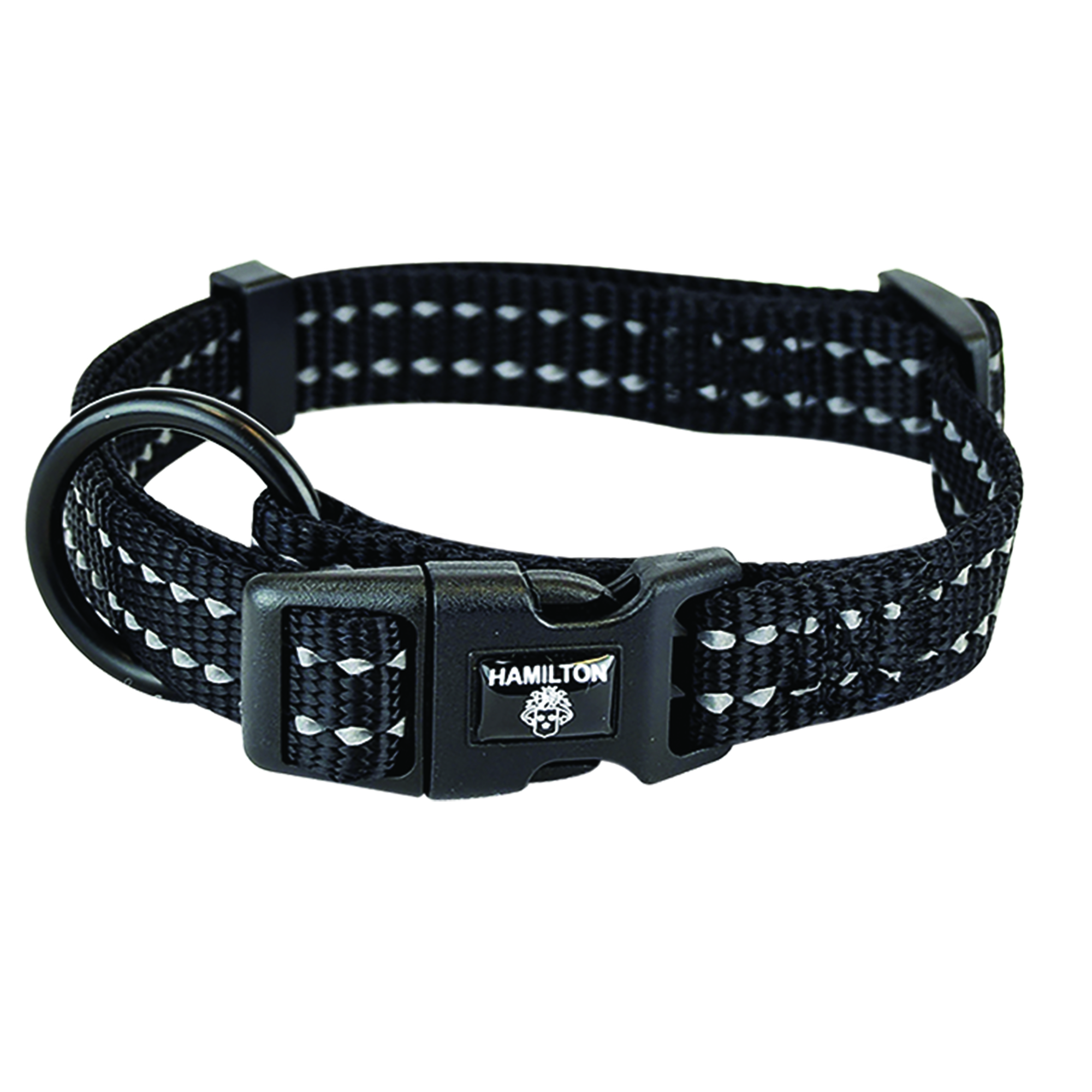 Features bright colors with reflective stitching to help pets and their parents stay visible in low-light. Deluxe nylon for comfort and quality. 5/8" thick with 2 rows of reflective stitching. Adjusts to fit 12" to 18"Specifications