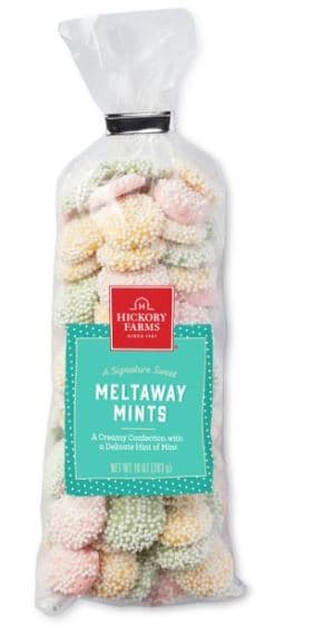 HICKORY FARMS MELTAWAY MINTS ARE THE PERFECT TREAT TO ADD TO YOUR HOLIDAY CELEBRATIONS. EACH MINT HAS A CREAMY BLEND WITH JUST A HINT OF MINTSpecifications