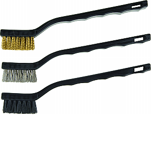 Used to remove rust scale dirt and for general surface preparation. Clean tools files small engine parts and copper tubing. 1/2" Bristles unaffected by paint removers solvents and thinners. Size: "7"" Bristles: Brass Nylon Stainless Bag: 3 Asst. Case: 12.Specifications