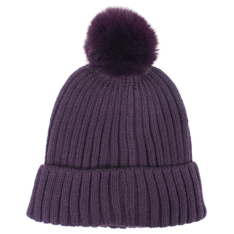 WOMENS 100% ACRYLIC BEANIE OFFERING A RIBBED CUFF AND FAUX RABBIT FUR POM AT THE TOP.Specifications