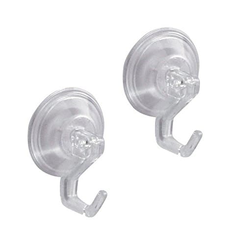 2 pack; Clear; Easy solution for bath shower & other organization; Ideal for hanging shower necessities like soaps & loofa; Includes two 2 x 2.5 hooks; Made from durable clear plastic; Simply lift push & lock feature for secure adhesion to smooth surfaces; Uses super strong suction to create extra storage