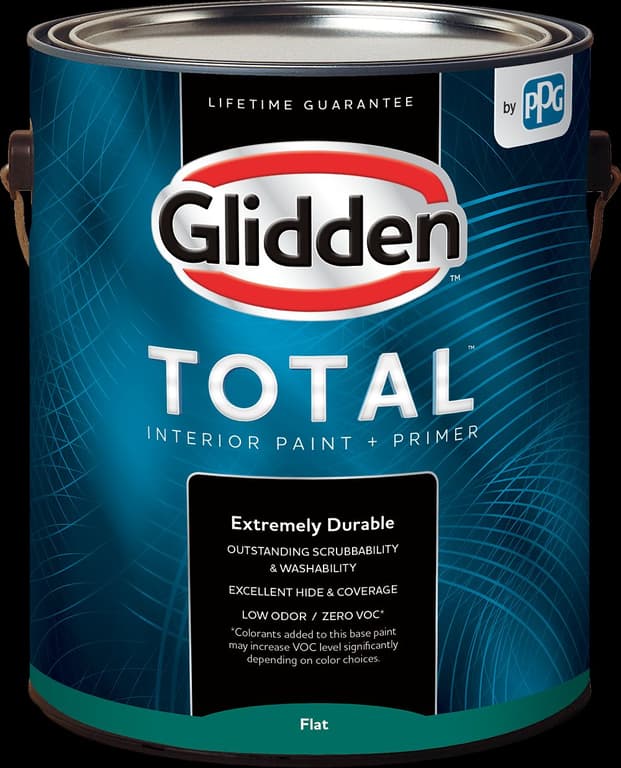 Glidden Total Interior Paint + Primer is extremely durable so it holds up to whatever life throws at it. This low odor/zero VOC paint has outstanding scrubbability and washability so repeated frequent cleaning is no problem. Get the job done right with fewer costs with excellent hide and coverage. All this and its backed by our lifetime guarantee.Specifications