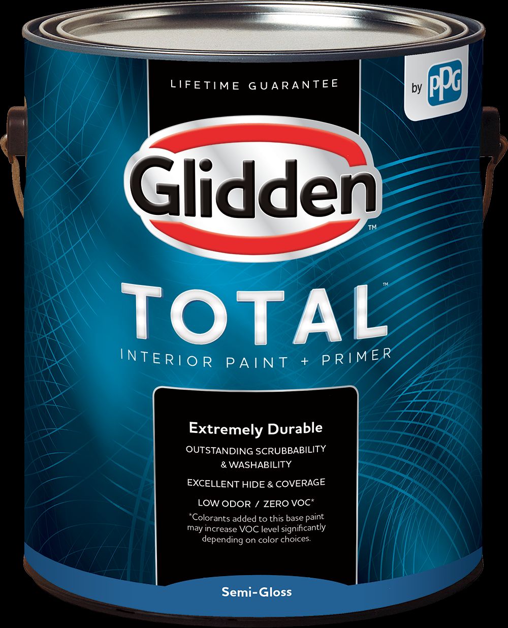 Glidden Total Interior Paint + Primer is extremely durable so it holds up to whatever life throws at it. This low odor/zero VOC paint has outstanding scrubbability and washability so repeated frequent cleaning is no problem. Get the job done right with fewer costs with excellent hide and coverage. All this and its backed by our lifetime guarantee.Specifications