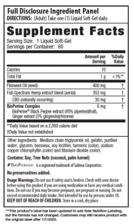 30 MG; CBD; Full Spectrum; Liquid Soft Gel; Supplement; USA sourced