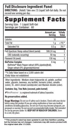 50 MG; CBD; Extra Strength; Full Spectrum; Liquid Soft Gel; Supplement; USA sourced