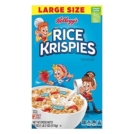 Whether you're enjoying it by the bowlful or through the delicious taste of The Original Treats recipe, Kellogg's Rice Krispies cereal makes it easy to bring a little magic to your day. Made with crispy oven-toasted puffed rice cereal, Rice Krispies are a satisfying and healthy way to start your day. A good source of 8 vitamins and minerals, Rice Krispies are also fat-free. Crafted to help bring energy to your mornings, our crispy cold cereal also makes for a sweet pick-me-up as an afternoon bite or late night treat. Just add your favorite dairy or nut-milk or enjoy as a crispy treat straight from the box. Decorate your bowl with strawberries, bananas, chocolate chips or your favorite toppings. Whip up a tasty batch of memories with your family by making The Original Treats recipe together. All you need are three simple ingredients: butter, marshmallows and Rice Krispies cereal. The possibilities are endless with Kellogg's Rice Krispies cereal.Specifications