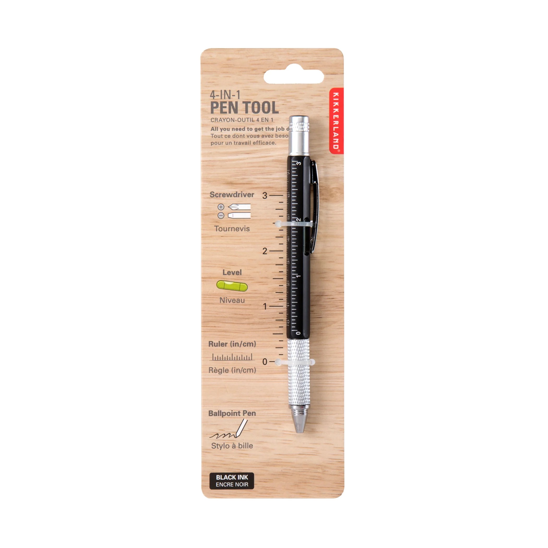 Compact, practical, and designed for the modern world; includes: 1 Philps screwdriver head & flat screwdriver head, 1 level, and 1 ruler (cm & in). Refillable with D1 cartridge.
