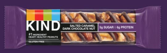 KIND Salted Caramel Dark Chocolate Nut bars are satisfying gluten free bars packed with nuts and the taste of dark chocolate that you can take anywhere. These KIND nut bars lead with heart healthy peanuts as the #1 ingredient. This healthy snack bar combines quality ingredients like almonds, dark chocolate and caramel to deliver a delicious taste with a little crunch. These snack bars come packed as individually wrapped snacks for a convenient option that makes eating healthy easier. It's the perfect nutrient-dense pick-me-up when life gets in the way. KIND bars Salted Caramel Dark Chocolate Nut contain 5 grams of sugar, 6 grams of protein, and are high in fiber. This KIND nut bar is also gluten free, has a low glycemic index, and is made without genetically engineered ingredients. Contains 15g of fat per bar.Specifications