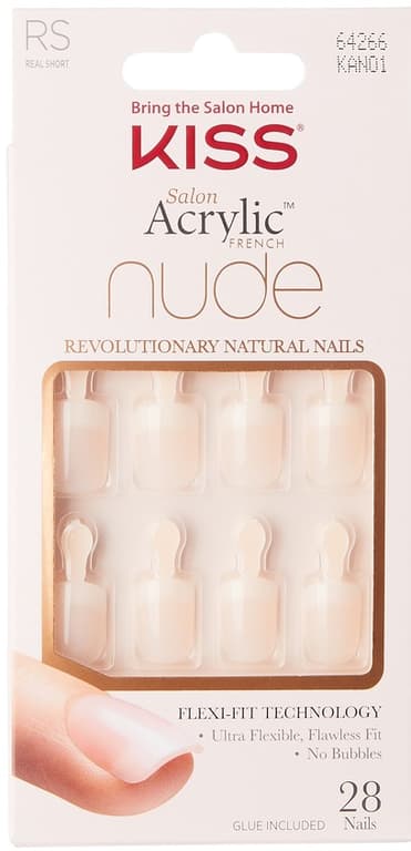 The look and strength of salon acrylics that a professional tediously sculpts onto the nails with a brush, but these glue on in minutes. Acrylic-infused technology makes the nails super durable and they never chip! Kit contains 28 nails, pink gel glue, mini file, and a manicure stick. Wears for up to 7 days.Specifications