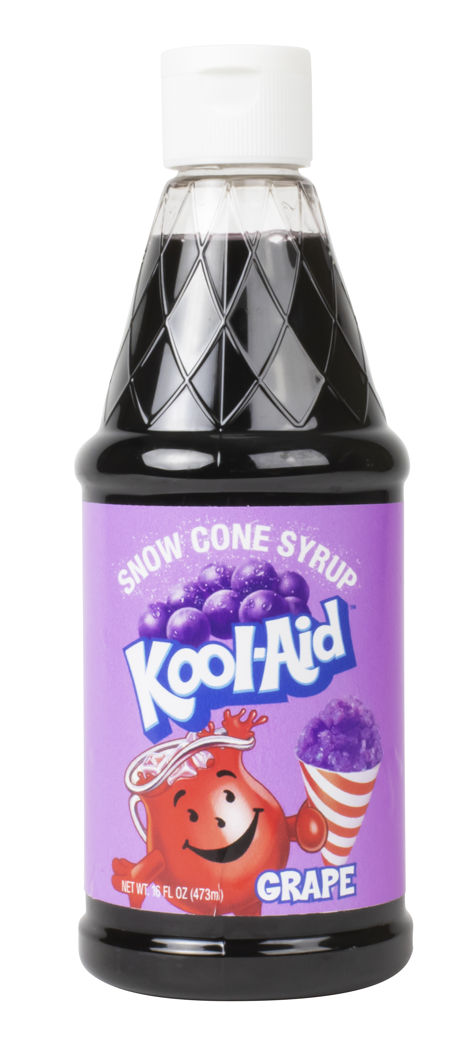 Kool-Aid 16-oz. Snow Cone Syrup in Grape is the perfect addition to any Nostalgia snow cone or shaved ice maker. Just add freshly shaved ice to a snow cone cup and pair with your favorite snow cone syrup for a delightfully icy treat. Mix and match flavors for even more fun. Each bottle makes approximately 8 snow cones. Impress your family and friends at your next get together and offer this cool treat with great flavor from our syrups. Whether you are lounging by the pool this summer, or entertaining guests at a BBQ lunch, shaved ice is always a fun family favorite. This pairs perfectly with any Nostalgia snow cone maker or ice shaver so you can have delicious shaved ice or snow cones anytime.Specifications