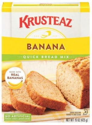 Krusteaz Banana Quick Bread is deliciously simple; made with both real walnuts and real bananas, it's amazing how something this good can be this easy to make! With real ingredients you and your family will love, this fresh Krusteaz Banana Nut Quick Bread is a guilt-free staple for any pantry. This versatile mix comes in a single, 15-ounce box.Specifications