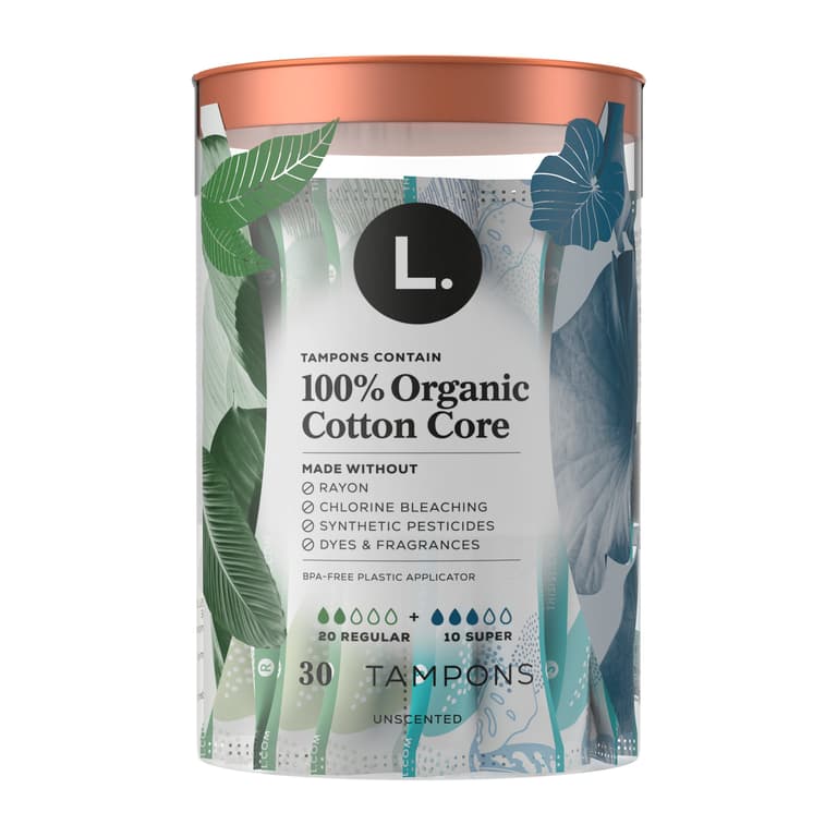 Tampons contain US grown organic cotton core that gently expands to fit your natural body shape. BPA-free plastic applicator. Made without fragrances, Rayon, and synthetic pesticides. Produced with polyester fiber that wicks away moisture, a glycerin coating for smooth feeling, and paraffin wax for smooth feeling.Specifications
