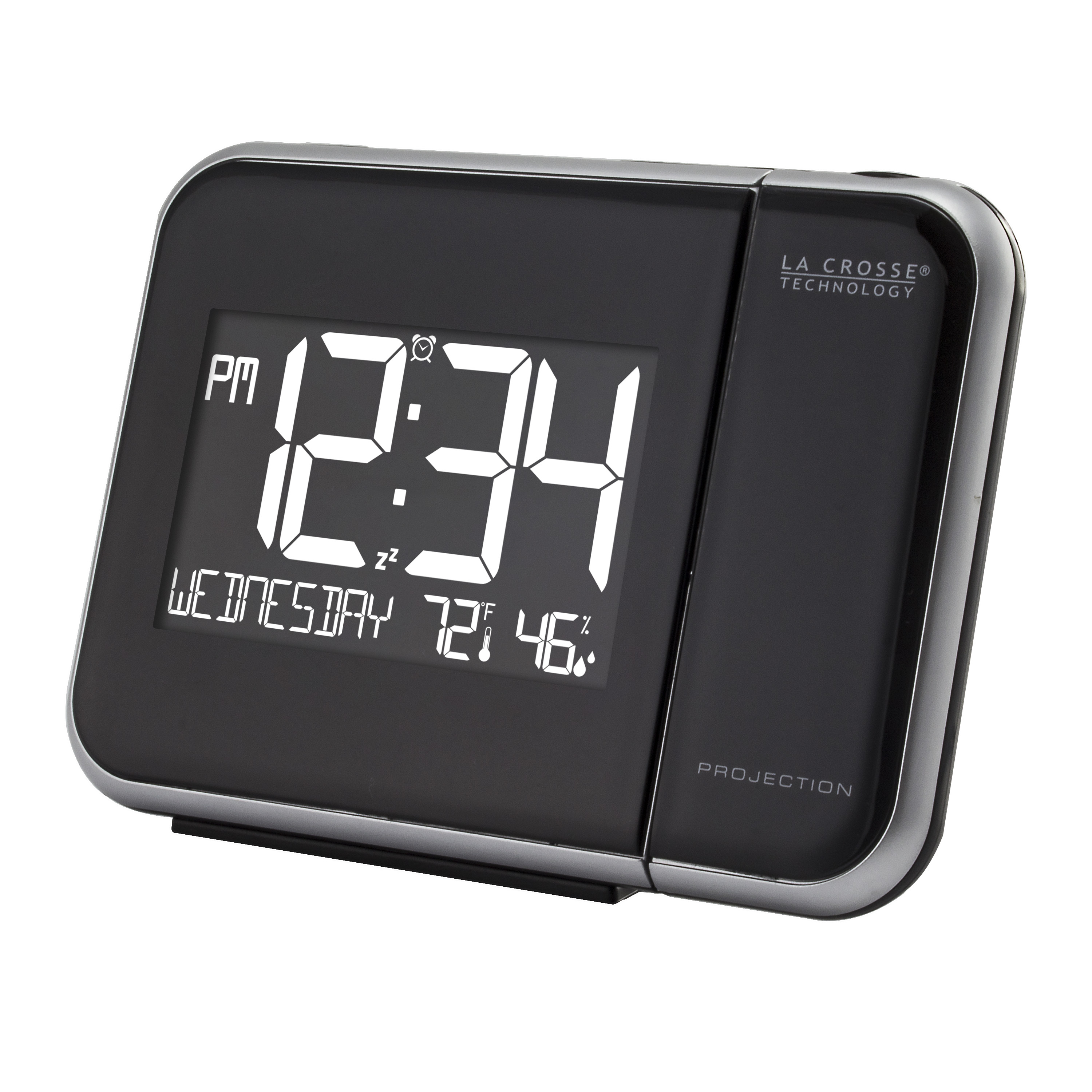 LA CROSSE TECHNOLOGY PROJECTION ALARM CLOCK WITH TEMPERATURE AND CALENDAR, BLACK