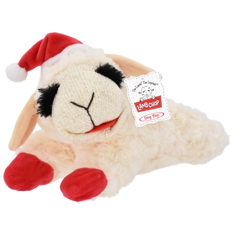 Lamb Chop is always a favorite during the holidays; This famous Lamb Chop is wearing a Santa Hat and squeaks